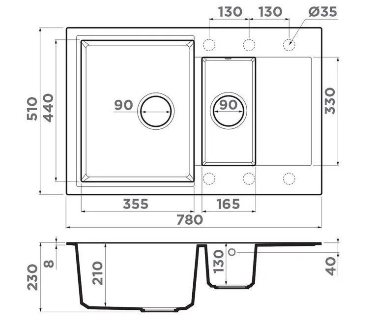 Мойки обладают повышенной устойчивостью к появлению бактерий, грибка благодаря внедрению уникального компонента — TETORON®. Этот полимер обволакивает гранит и защищает его от воздействия агрессивных внешних факторов. Дополнительно в состав акриловой смолы входят ионы серебра, которые препятствуют размножению бактерий на поверхности мойки.