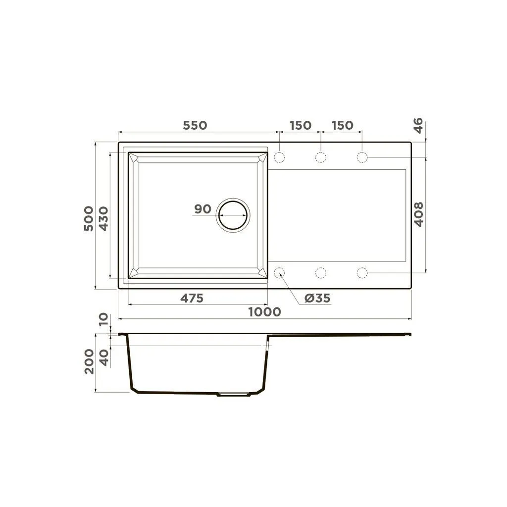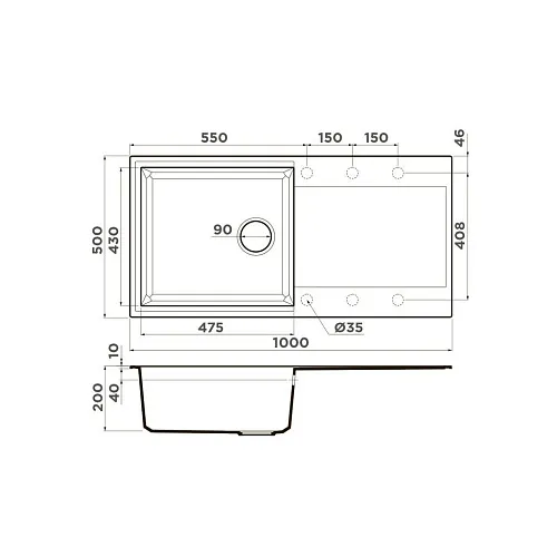 • Мойка черного цвета создана из материала «Tetogranit Metal». В его составе: акриловая смола и натуральный гранит с добавлением металлических частиц, которые придают блеск и мерцание поверхности мойки. «Tetogranit Metal» отличается максимальной устойчивостью к температурным перепадам и ударам;