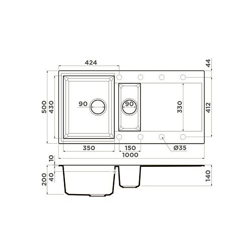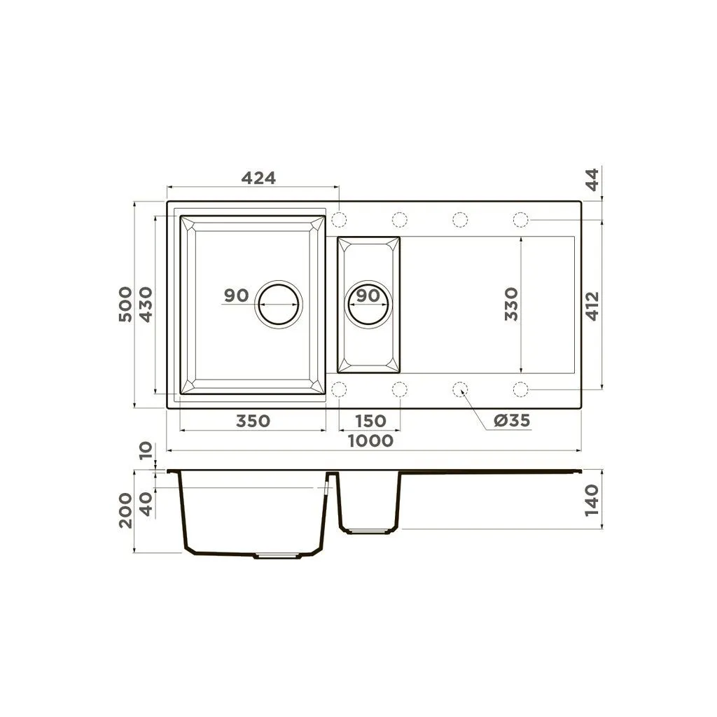 • Мойка черного цвета создана из материала «Tetogranit Metal». В его составе: акриловая смола и натуральный гранит с добавлением металлических частиц, которые придают блеск и мерцание поверхности мойки. «Tetogranit Metal» отличается максимальной устойчивостью к температурным перепадам и ударам;