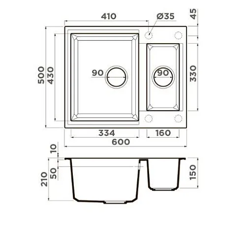 | Глубина чаши, мм | 210 | |