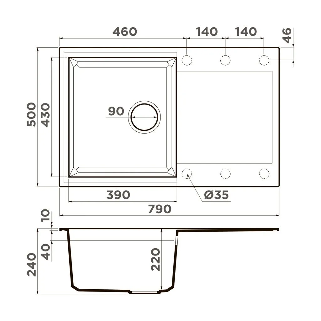 | Форма мойки | прямоугольная | |