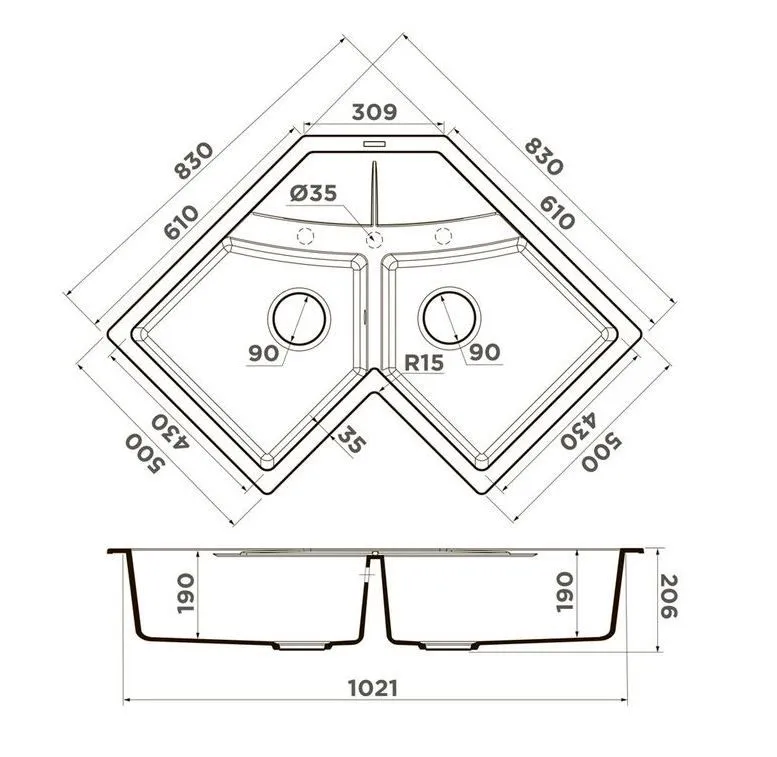 | Материал мойки | Искусственный гранит Tetogranit | |