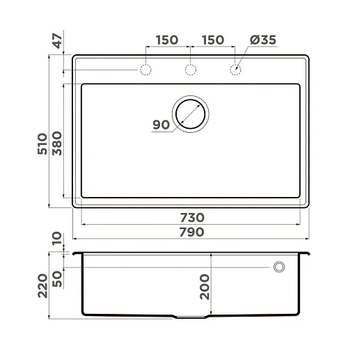 | Глубина чаши, мм | 220 | |