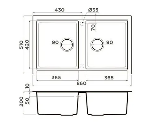 | Глубина чаши, мм | 200 | |
