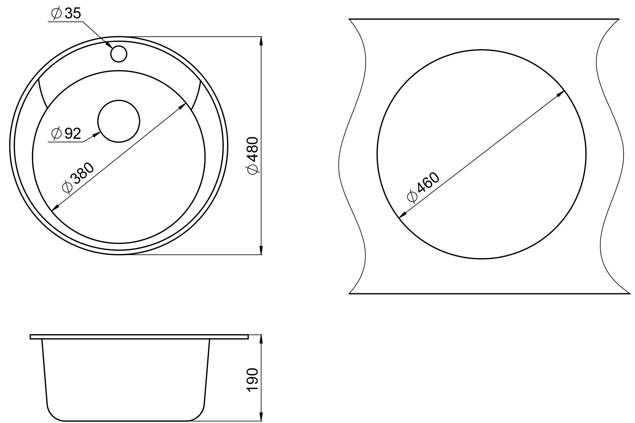 | Форма мойки | круглая | |