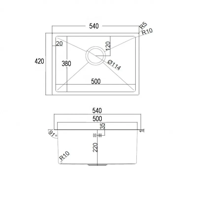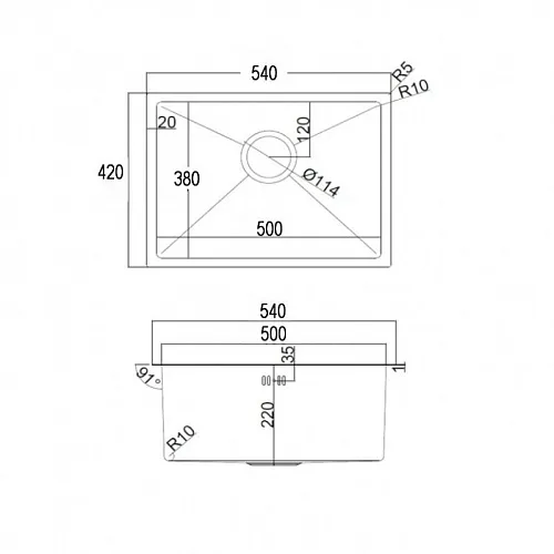 • Габаритные размеры мойки: 540 x 420 мм