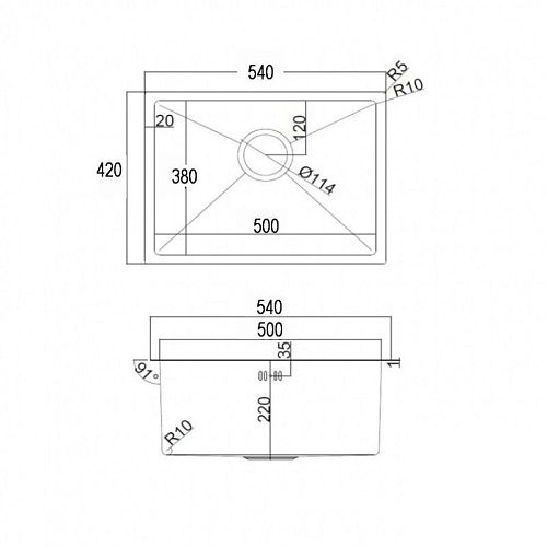 • Размеры чаши: 500 x 380 мм и глубина 220 мм.