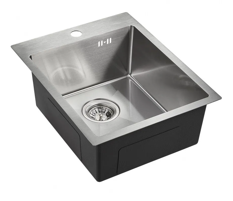 Вес мойки в коробке с комплектующими: 4 кг, вес нетто: 3.5 кг. Объем: 0,06 cbm. Размер слива — 114 мм. Мойка универсального монтажа. Толщина стали: 1.0 мм. Глубина: 200 мм. Сама мойка имеет удобный борт для установки смесителя. Толщина борта: 2 мм