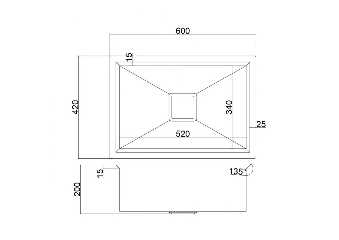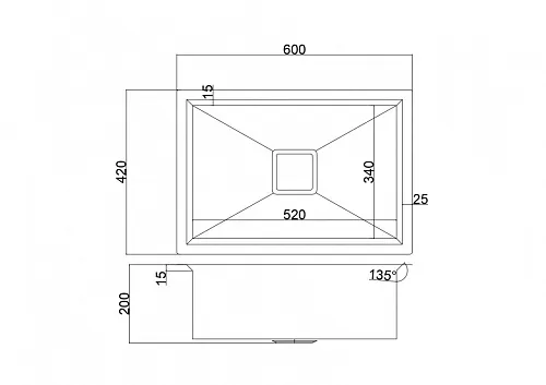 Вес мойки в коробке с комплектующими: 7,5 кг, вес нетто: 6.5 кг. Объем: 0,073 cbm. Размер слива — 114 мм. Мойка универсального монтажа. Толщина стали: 1.2 мм. Глубина: 200 мм. Сама мойка имеет одну большую чашу. Смеситель для мойки устанавливается на столешницу.