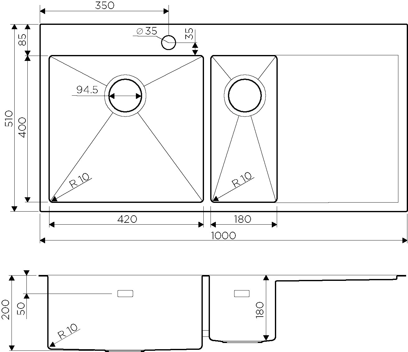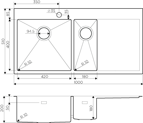 | Глубина чаши, мм | 200 | |