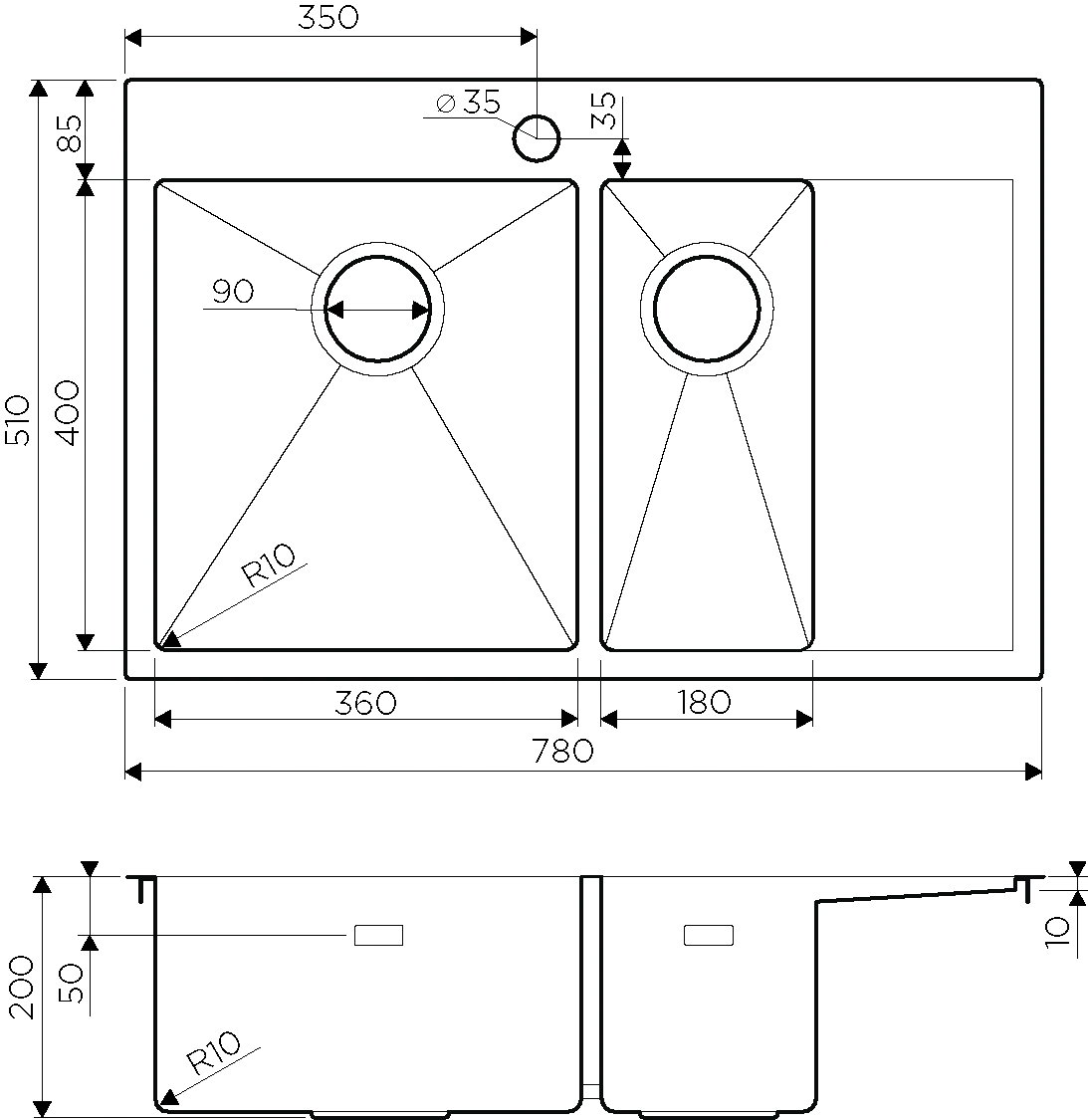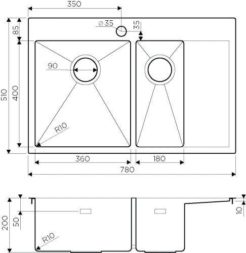 | Глубина чаши, мм | 200 | |