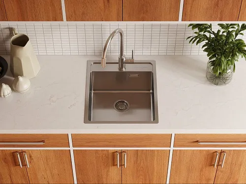 В верхней части мойки расположен широкий бортик с готовым отверстием под смеситель. Рядом с ним, можно расположить аксессуары, вырезав дополнительные отверстия.