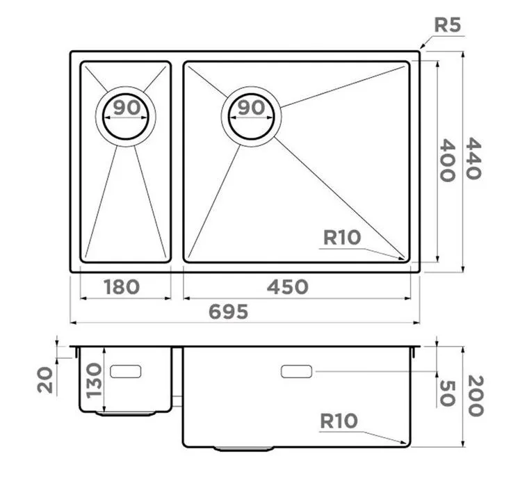Модели в конфигурации "Side SF" – это мойки, у которых сливное отверстие смещено в угол чаши. Такая конструкция позволяет с легкостью разместить под мойкой измельчитель пищевых отходов и сохранить место для мусорного ведра и фильтра для воды.