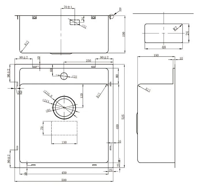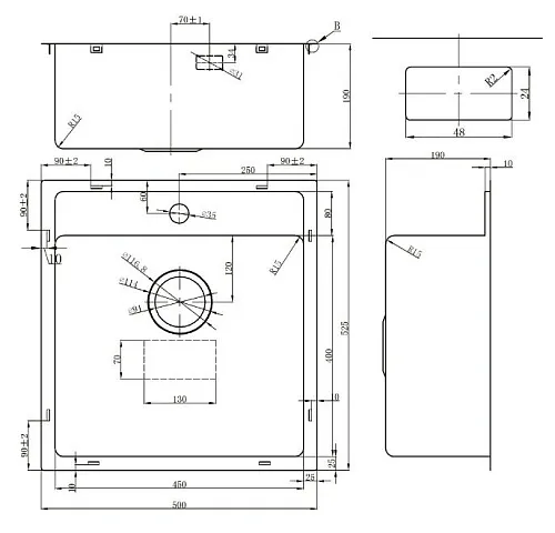 | Форма мойки | прямоугольная | |