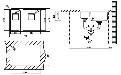 | Глубина чаши, мм | 180 | |