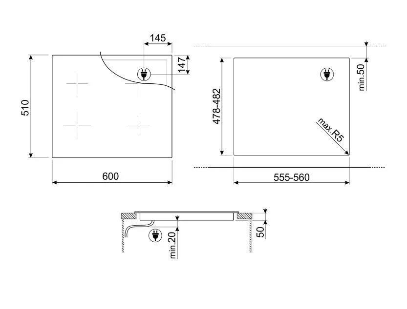 | Ширина шкафа для установки | 600 мм | |