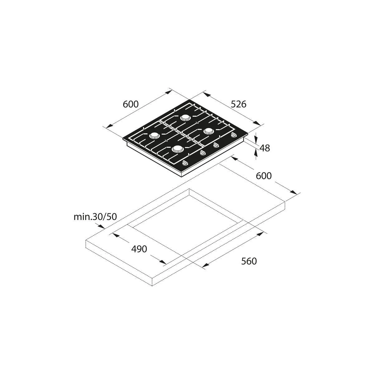 | Ширина шкафа для установки | 600 мм | |