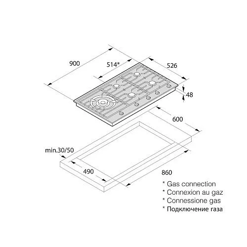 | Ширина варочной поверхности | 900 мм | |