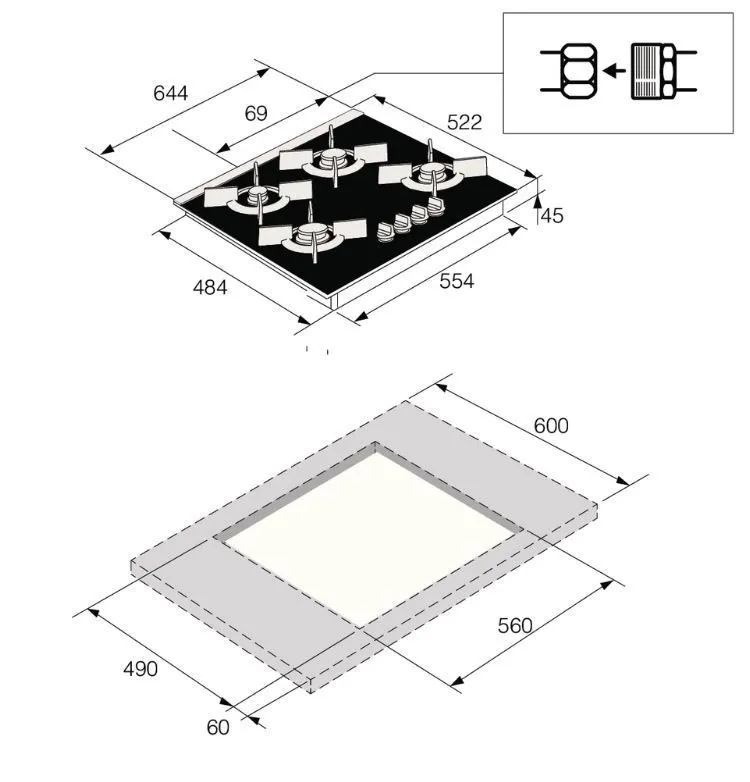| Ширина варочной поверхности | 644 мм | |