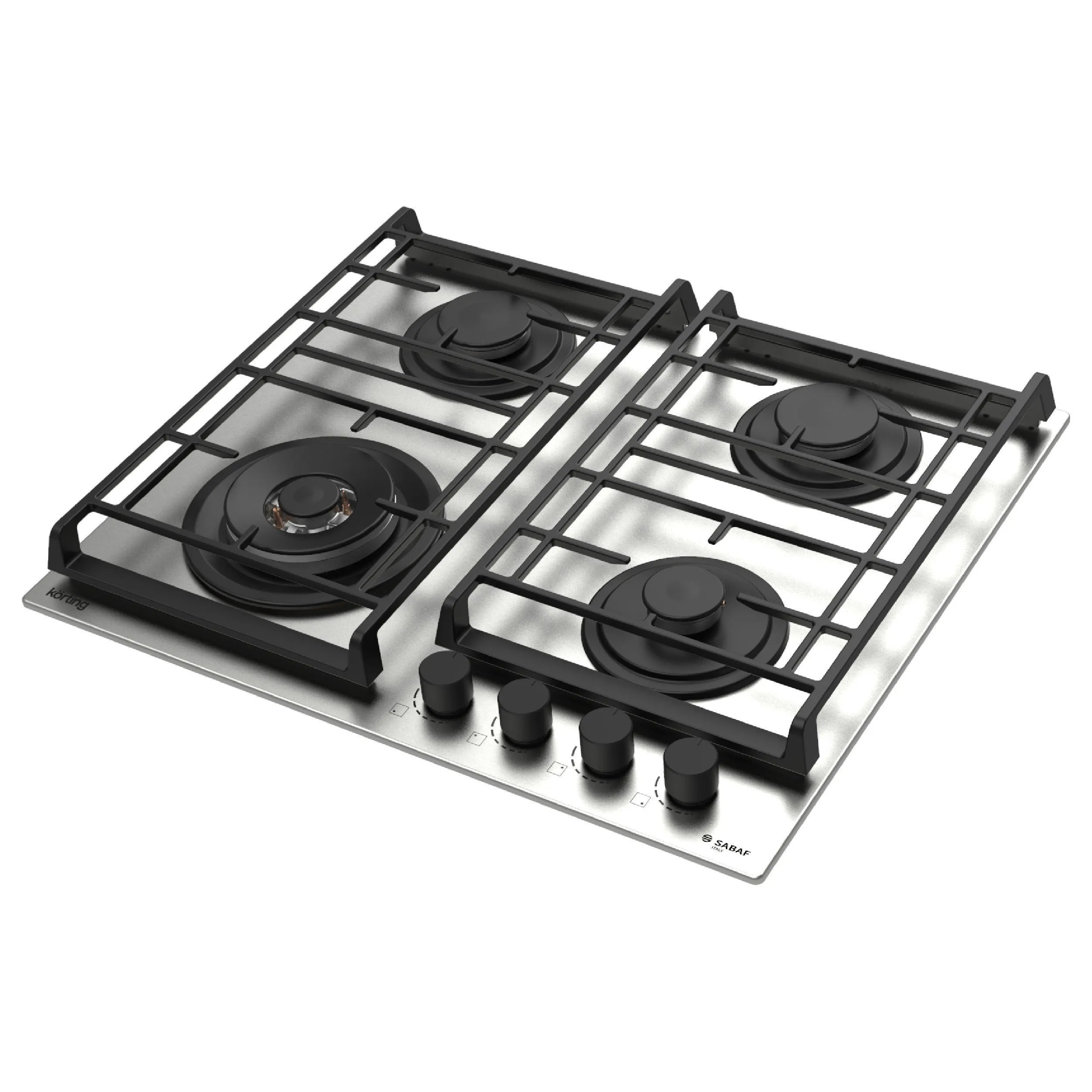Поворотные регуляторы газовых варочных поверхностей Korting выполнены из металла, что создает профессиональный стиль и препятствует их нагреву.