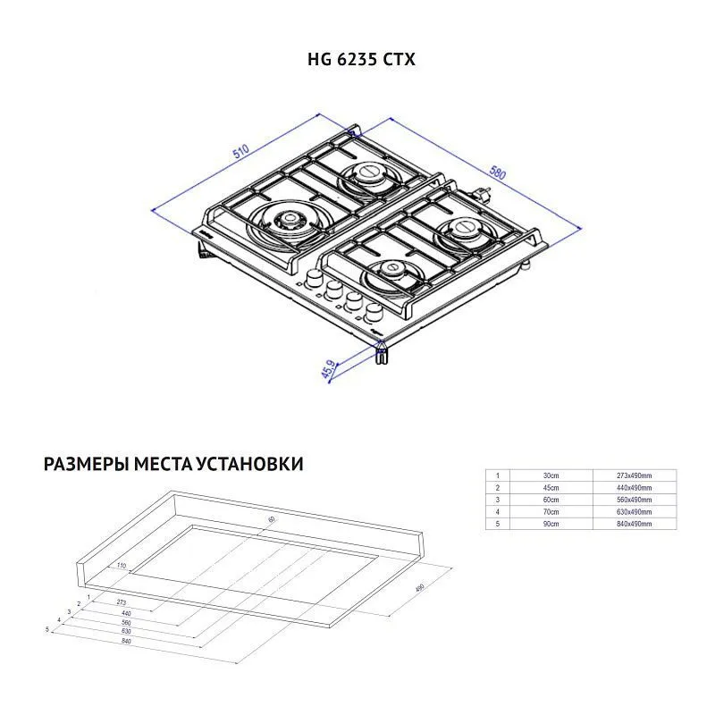 Мощная горелка WOK перемещена по сравнению со стандартным размещением и расположена на передней части поверхности, что исключает нагрев стеновых панелей кухни, такое расположение более удобное для приготовление объёмных блюд.