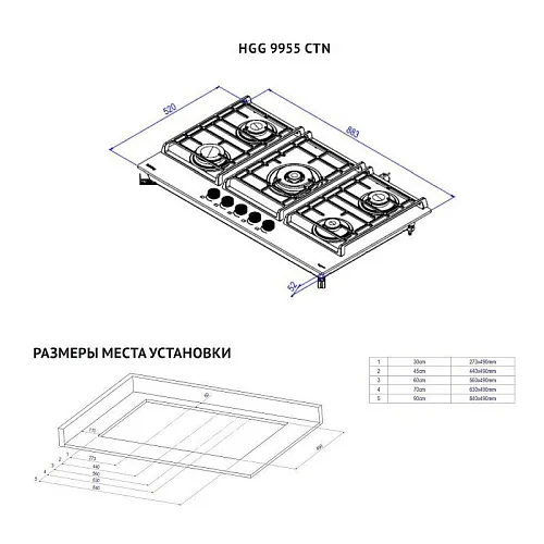 Панель варочная газовая KORTING HGG 9955 CTN стекло