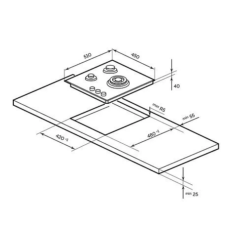| Ширина варочной поверхности | 450 мм | |
