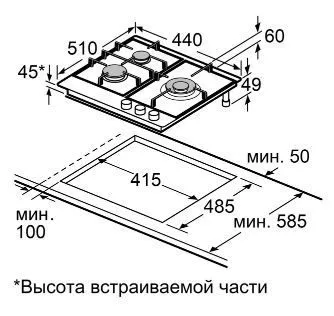 | Ширина варочной поверхности | 440 мм | |
