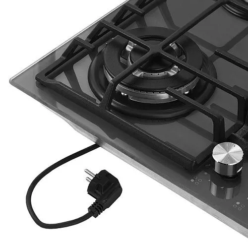Включение варочной панели осуществляется с помощью электроподжига. Система газ-контроля надежно защищает бытовой прибор от утечек газа при неожиданном затухании конфорки.