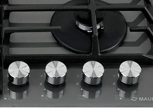 Подача газа и электроподжиг конфорок осуществляется с помощью поворотных регуляторов - полнотелых цельнометаллических ручек. Для простоты использования около каждой ручки нанесены информационные изображения: используемая конфорка, подача газа выключена, электроподжиг, максимальное пламя и минимальное пламя.
