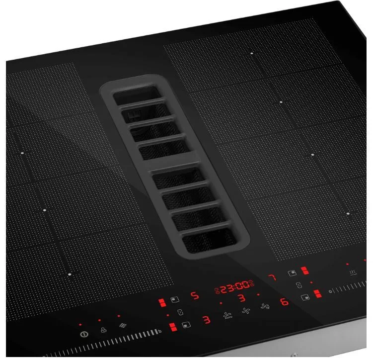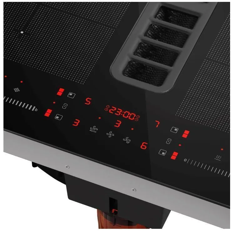 Пользовательский интерфейс позволяет с необычайной легкостью управлять варочной панелью и встроенным вентиляционным модулем. Достаточно одного движения кончика пальца, и вам станут доступны желаемые настройки температуры, скорости отвода воздуха и другие функции.