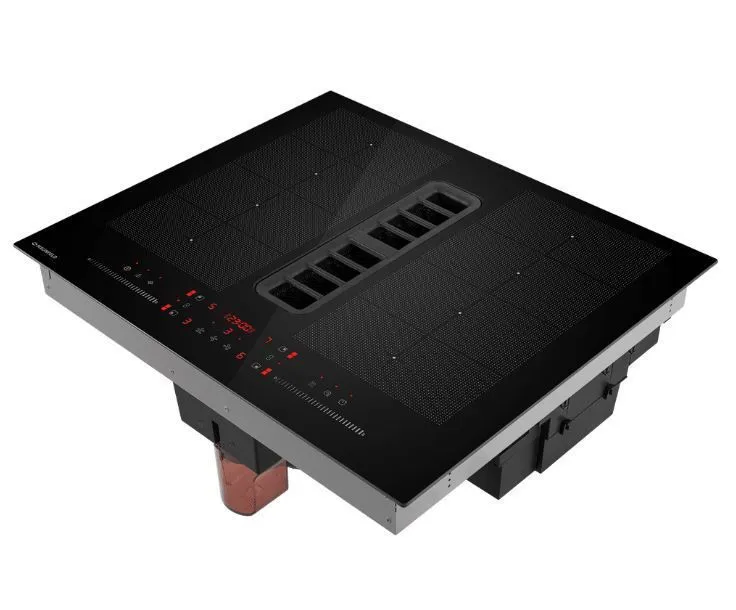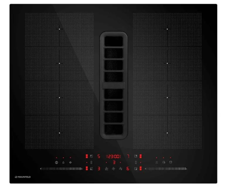 Индукционная варочная панель MAUNFELD MIHC604SF2BK сочетает в себе утонченный баланс эстетики и функциональности. Благодаря индукционной технологии она осуществляет нагрев посуды, а не поверхности. Четыре независимые варочные зоны расположены на черном закаленном стекле. В центре находится элегантная и прочная решетка, которая скрывает мощную зону вытяжки. .