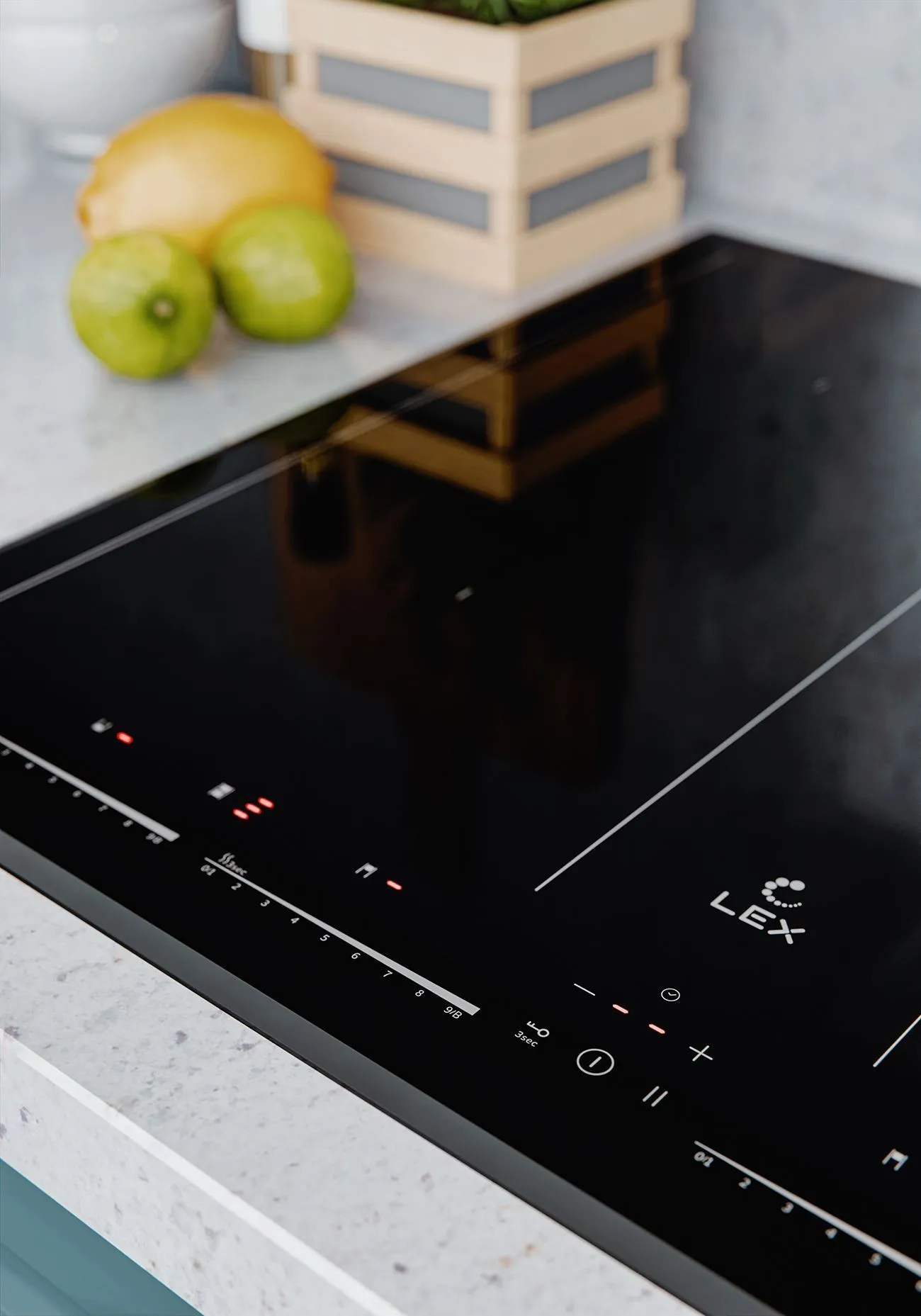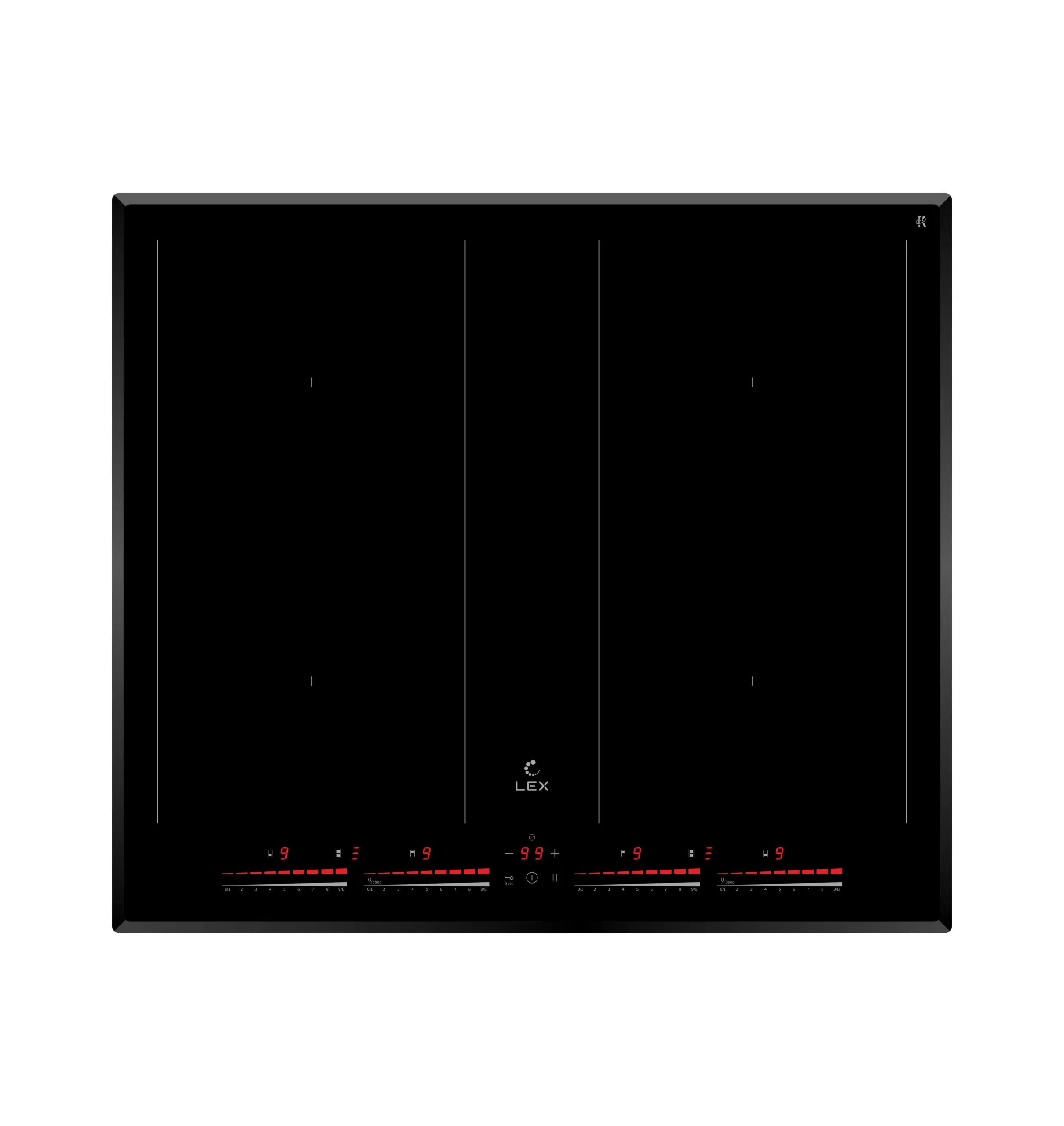 Электрическая индукционная варочная панель LEX EVI 641C BL имеет четыре конфорки и индивидуальное слайдерное управление для каждой зоны нагрева. Ширина для встраивания 600 мм.
