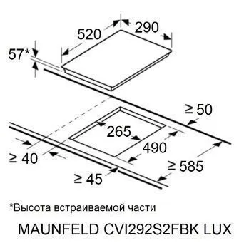 | Ширина варочной поверхности | 290 мм | |