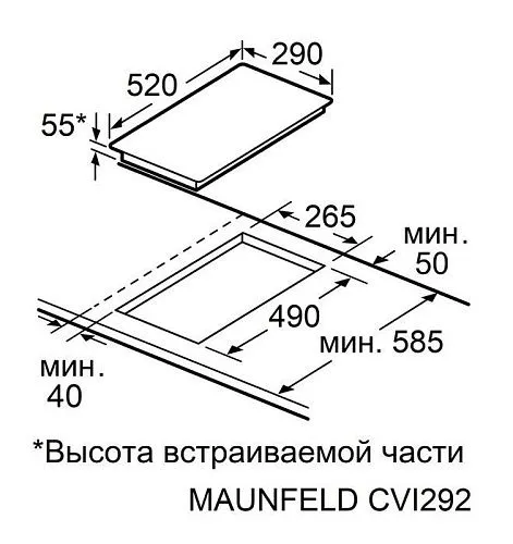 | Ширина варочной поверхности | 290 мм | |