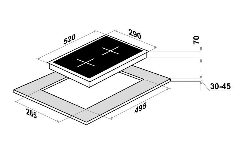 | Ширина варочной поверхности | 290 мм | |