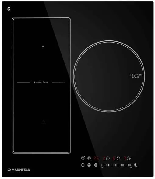 Bridge Induction это высокая производительность, возможность объединения двух конфорок, для регулирования одним элементом управления. Мощность и таймер этих конфорок изменяются одновременно. Индукционный мост предназначен для приготовления в посуде большого размера.