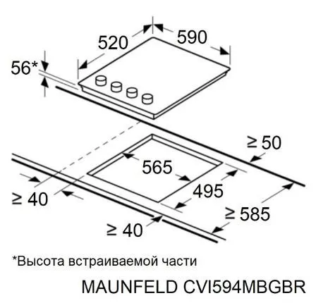 | Ширина варочной поверхности | 590 мм | |