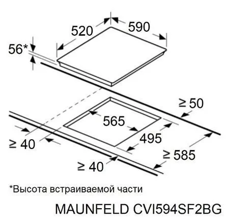| Ширина варочной поверхности | 590 мм | |
