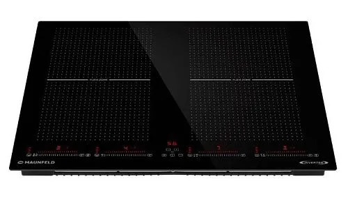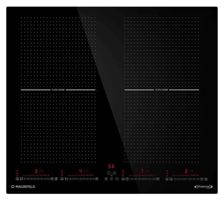Flex Zone — представляет собой инновационную систему индукционных конфорок, которая обеспечивает полную свободу в использовании посуды любого размера, от турки до казана. Плита для нагрева задействует только ту поверхность, с которой соприкасается дно посуды и только там где вы ее поставили.