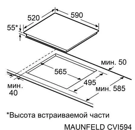 | Ширина варочной поверхности | 590 мм | |