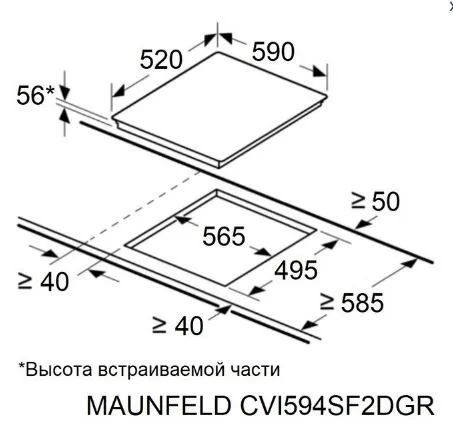 | Ширина варочной поверхности | 590 мм | |