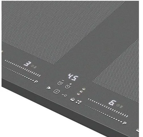 Flex Zone — представляет собой инновационную систему индукционных конфорок, которая обеспечивает полную свободу в использовании посуды любого размера, от турки до казана. Плита для нагрева задействует только ту поверхность, с которой соприкасается дно посуды и только там где вы ее поставили.