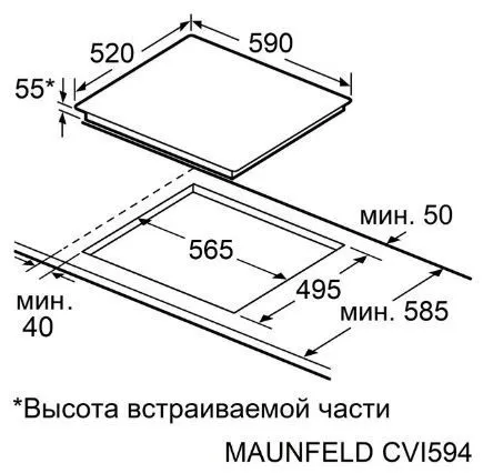 | Ширина варочной поверхности | 590 мм | |