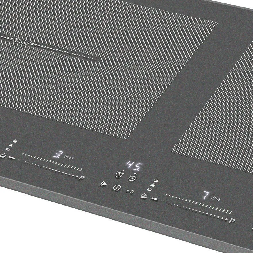 Flex Zone — представляет собой инновационную систему индукционных конфорок, которая обеспечивает полную свободу в использовании посуды любого размера, от турки до казана. Плита для нагрева задействует только ту поверхность, с которой соприкасается дно посуды и только там где вы ее поставили.