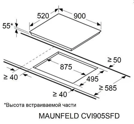 | Ширина варочной поверхности | 900 мм | |