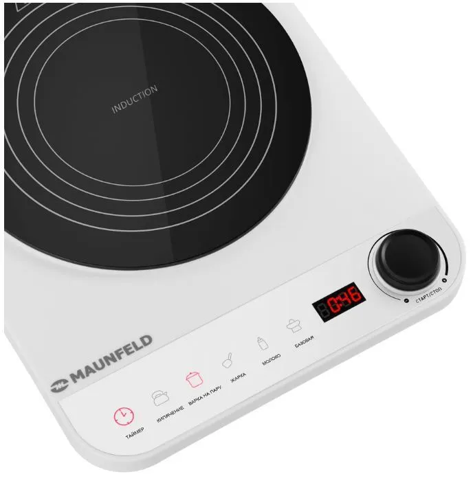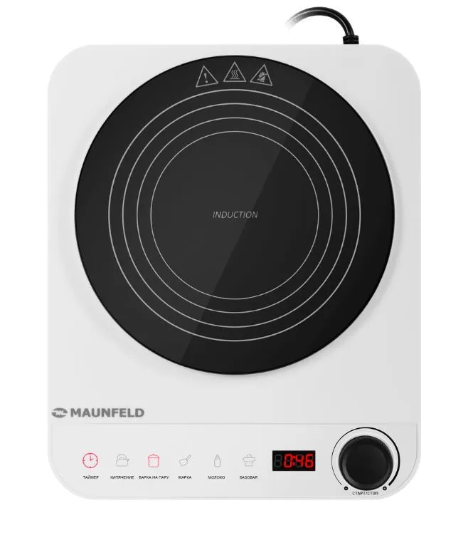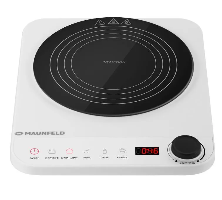 Настольная индукционная плитка со стеклокерамической варочной панелью и индукционной конфоркой быстрого нагрева. Компактные размеры и небольшой вес позволяют легко переносить плитку и брать с собой на дачу.