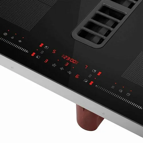 Пользовательский интерфейс позволяет с необычайной легкостью управлять варочной панелью и встроенным вентиляционным модулем. Достаточно одного движения кончика пальца, и вам станут доступны желаемые настройки температуры, скорости отвода воздуха и другие функции.