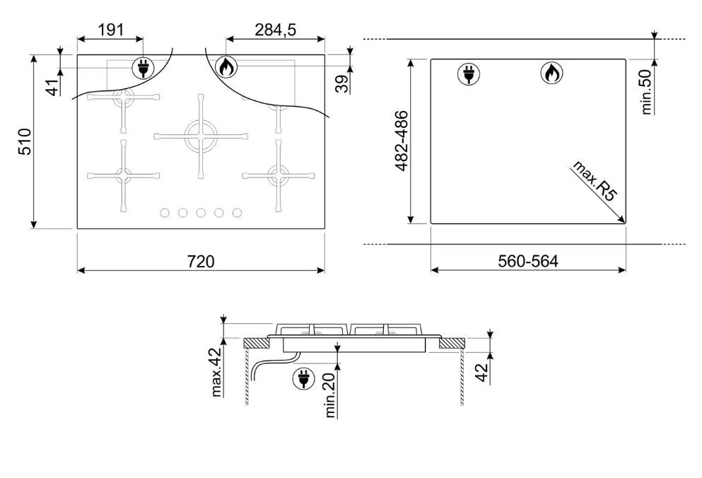 | Ширина варочной поверхности | 720 мм | |
