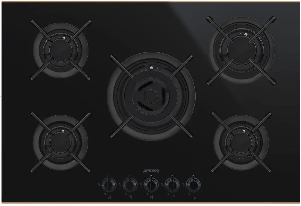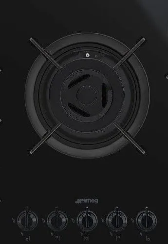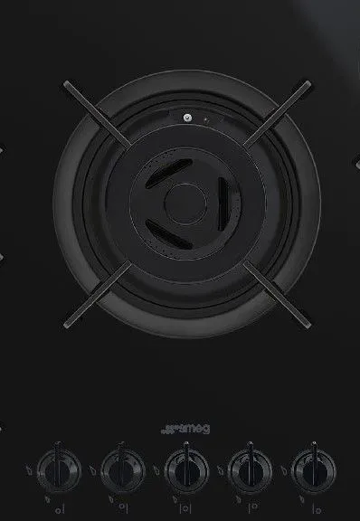 Варочная панель SMEG PV675CNR выполнена из черной стеклокерамики и оснащена медным профилем. Защита от перегрева автоматически выключит панель. Если пламя потухнет, подача газа автоматически прекратится. Поворотные переключатели позволяют точно регулировать мощность нагрева.
